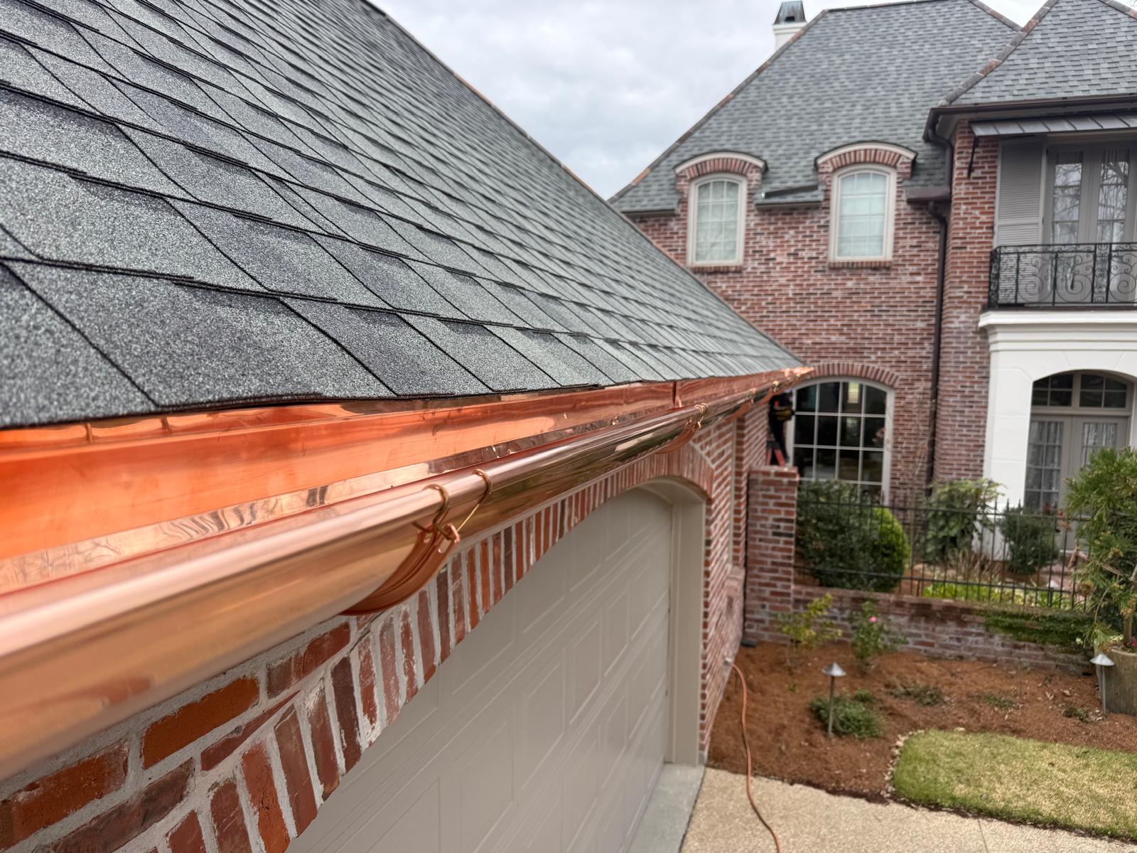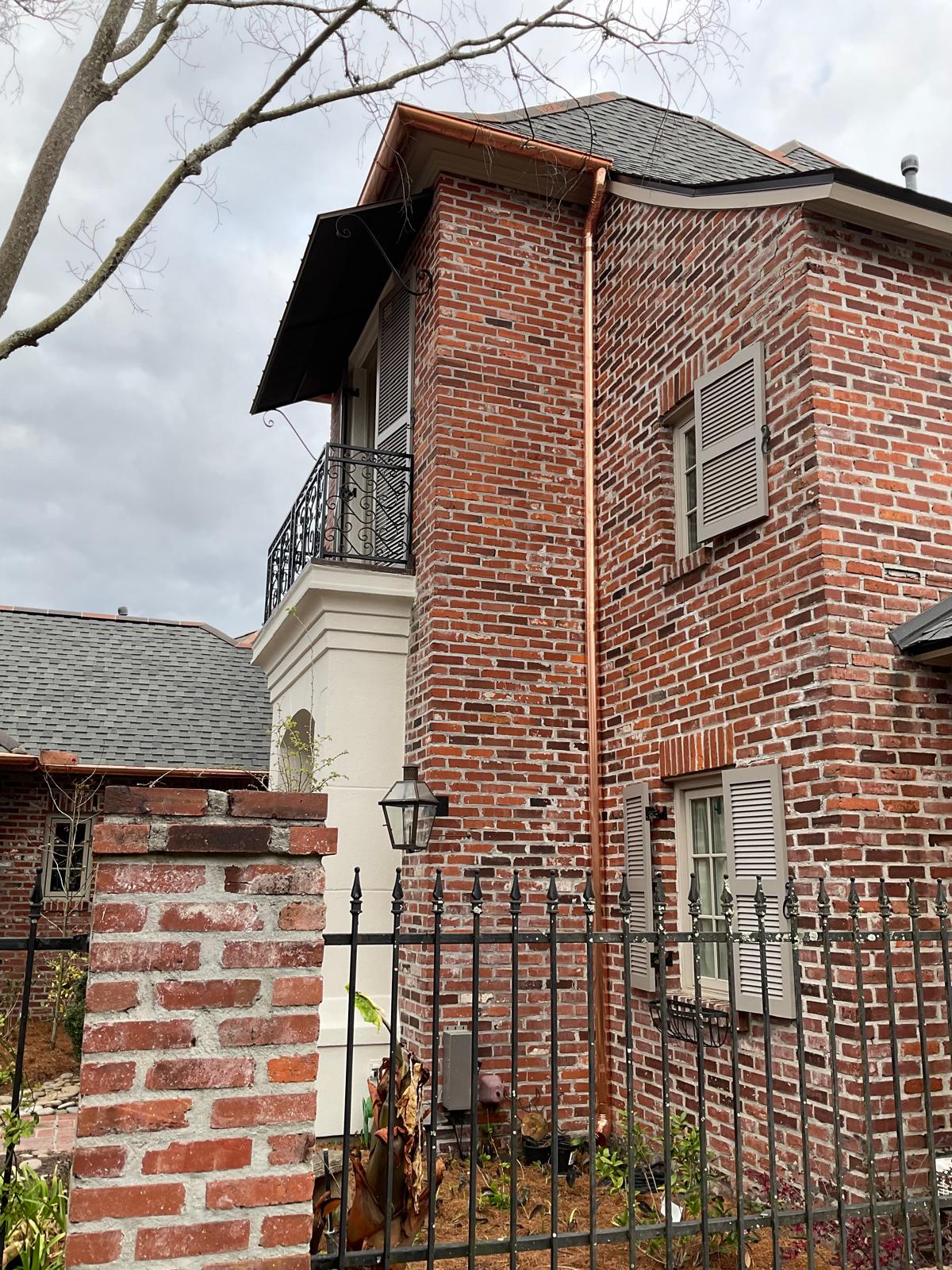 ✨ Before ➡️ After ✨ -- This Baton Rouge home previously had no gutter system installed. We added Half Round Copper Gutters to provide proper water management while enhancing the overall exterior appearance. 🏡🌧️