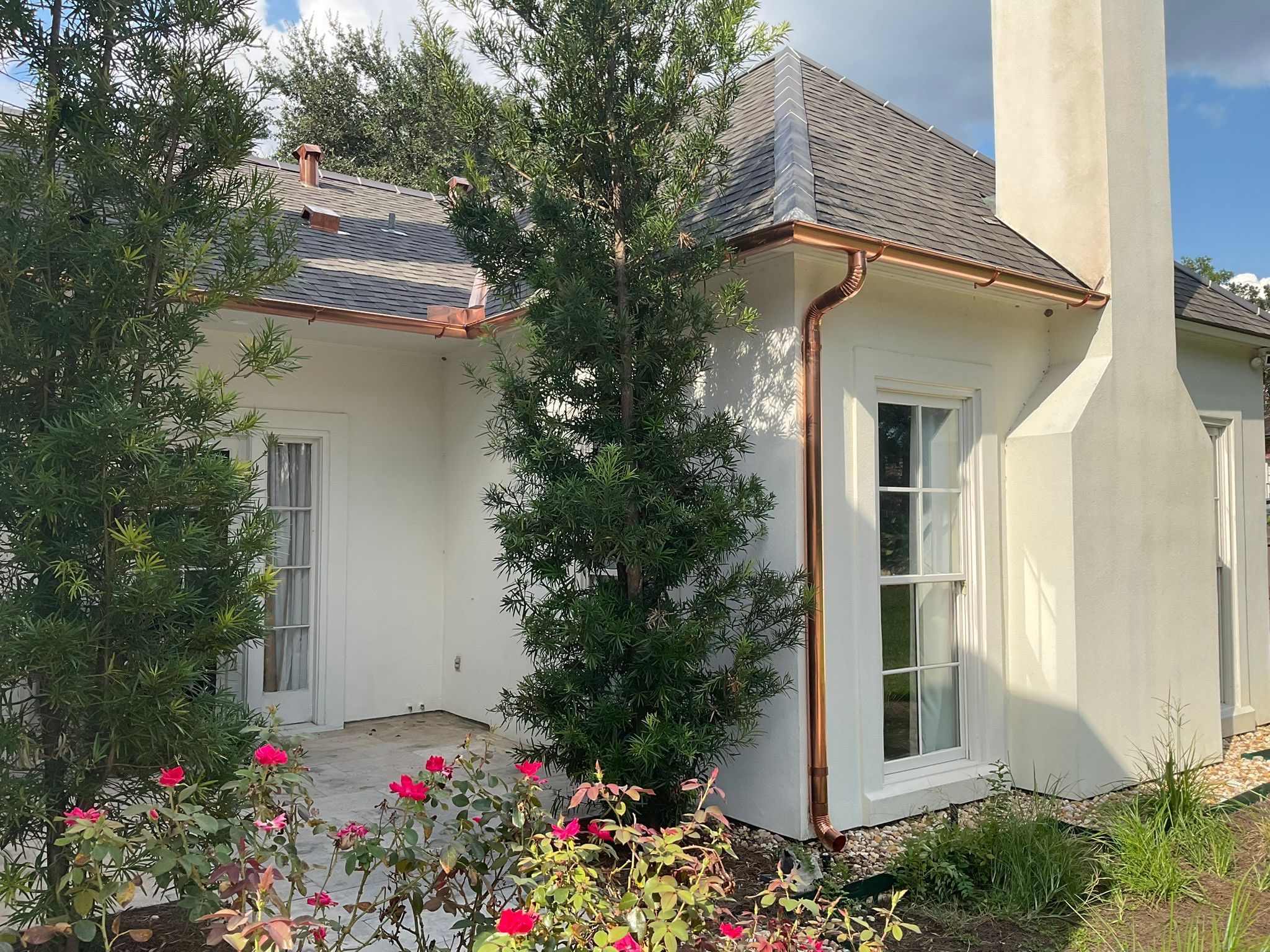 Brand New Copper Gutters Installed in Country Club Baton Rouge, Louisiana